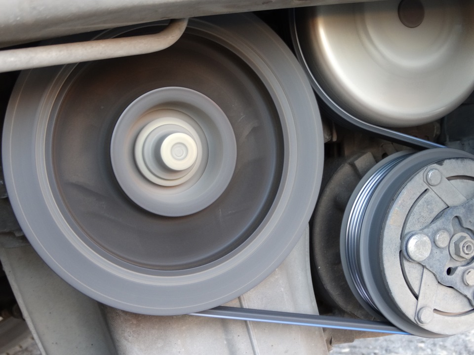 На модификациях с автоматическим натяжителем – ключом поворачиваем натяжитель и скидываем ремень с него, а затем ставим новый ремень, причем это удобнее делать снизу, отклонив переднюю часть подкрылка.